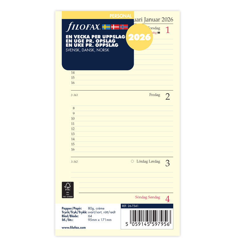 Dagbok/kalender Vecka per uppslag Svensk/ Dansk/ Norsk Personal 2026