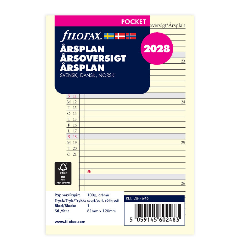 Årsplan Vertikal Svensk/ Dansk/ Norsk Pocket 2028